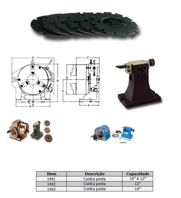 Divisor Universal com Placa de Torno de 200 mm, discos divisores e contra – ponta. |